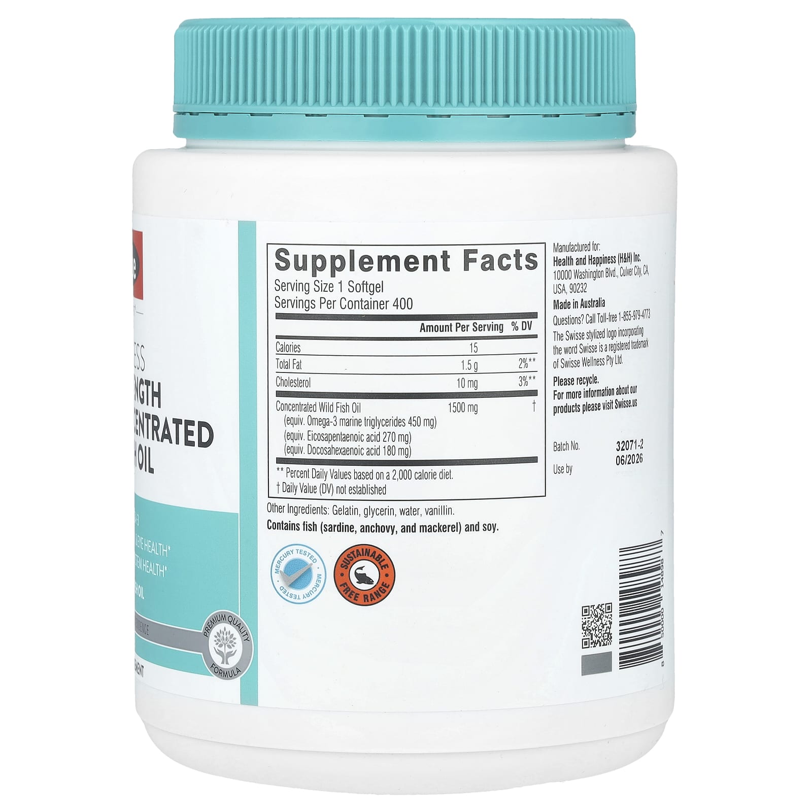 Swisse Ultiboost® Óleo de Peixe Selvagem Concentrado de Ômega-3 Inodoro de Alta Potência 1.500 mg 400 Cápsulas Softgel – Swisse Suplementos Ômegas e Óleos de Peixe (EPA/DHA) Ômega 3 e Óleo de Peixe.