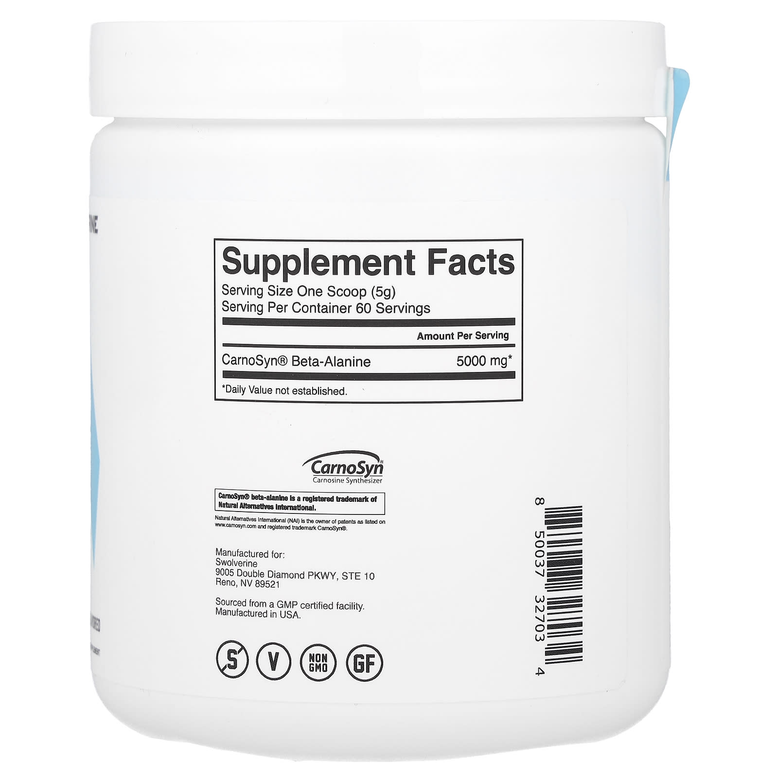 Swolverine Beta-Alanina Sem Sabor 300 g (1058 oz) – Swolverine Suplementos Aminoácidos Beta Alanina.