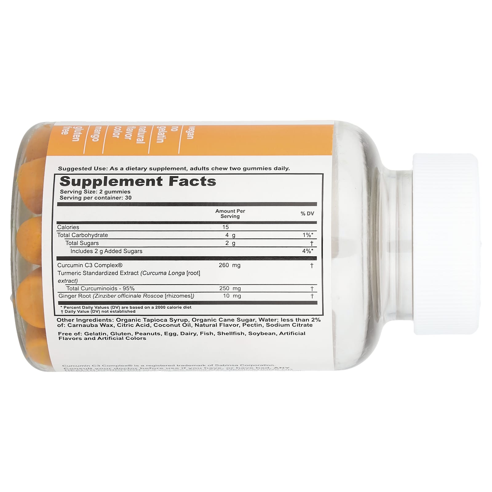 Não contém: Gelatina, glúten, amendoim, ovo, laticínios, peixe, moluscos, soja, sabores ou corantes artificiais.