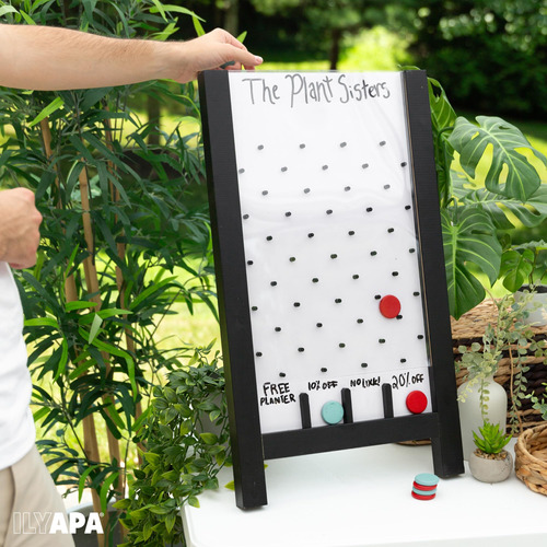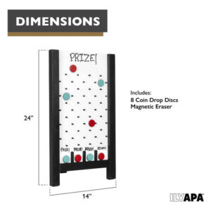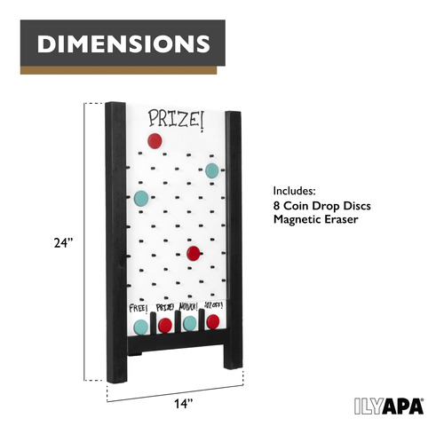 Eleve sua próxima feira, exposição, carnaval ou festa com a emoção emocionante do Ilyapa Board! Essa prancha de entrega de prêmios grande e portátil é um clássico que agrada ao público, fácil de configurar e atrai instantaneamente as pessoas. Perfeito para gerar leads e aumentar o engajamento, este jogo gigante apresenta uma construção robusta de madeira e inclui tudo o que você precisa para começar a jogar: 8 discos para colocar moedas, quadro branco e uma borracha. Veja os jogadores jogarem seus discos ou discos no tabuleiro de planko, navegando pelos pinos para ter a chance de ganhar grandes prêmios. Se você está procurando grandes jogos de carnaval, um divertido jogo de lançamento de discos, uma atividade de feira comercial que chame a atenção ou um jogo de tabuleiro interativo para seu próximo evento, o Ilyapa Board oferece emoção e memórias duradouras. Nós garantimos 100% de nossos produtos. Peça seu jogo hoje e comece a diversão! – Trade Show & Event Magnet: atraia multidões com a emoção clássica deste grande tabuleiro de jogo! Perfeito para exposições, festas e muito mais. – Aumente o engajamento, gere leads: crie entusiasmo com nosso quadro de entrega de prêmios e colete informações de contato enquanto os participantes tentam a sorte para ganhar prêmios. – Configuração fácil e diversão instantânea: o design robusto e os 8 discos de moedas incluídos significam que você está pronto para jogar este jogo em minutos. – Jogo interativo e de alta visibilidade: veja as moedas caírem e a emoção aumentar com nosso grande tamanho de 14 x 24 polegadas, tabuleiro de jogo atraente. – Garantia Ilyapa = Paz de espírito: apoiamos 100% nossos tabuleiros de entrega de prêmios. Compre com confiança, sabendo que estamos aqui para ajudar se você precisar.