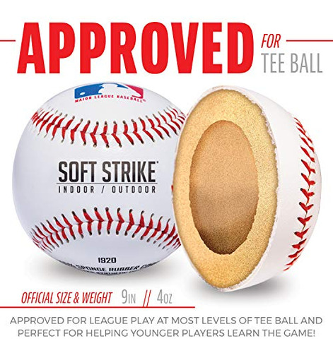 MLB Soft-Strike Teeball – Official Size and Weight Approved For Teeball – Hollow Rubber Core Technology For Safety – MLB Teeball Ball For Indoor/Outdoor Use – Pack of 1 – OFFICIAL TEEBALL SIZE & WEIGHT: 9.0 Inches and weighs 4.0 ounces – PLAY SAFE: Hollow rubber core makes throwing and catching safe for young players. – DURABLE: Syntex Synthetic cover and double-stitched seams – HOLLOW CORE TECHNOLOGY: Provides the lightest ball possible for teeball. – Approved for teeball at most levels of play.