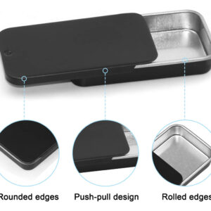 “Nossos recipientes de estanho são feitos de material de folha de flandres de alta qualidade para maior durabilidade. E essas latas são leves, atraentes, duráveis e fáceis de transportar. A tampa de rosca ou deslizante do frasco permite que você aperte facilmente a tampa sem deixar o conteúdo vazar. Mantenha seus itens armazenados protegidos do risco de vazamentos ou derretimento. Essas latas deslizantes de metal são uma excelente opção de embalagem para muitos produtos, como protetor labial, doces, balas, balas, miçangas e muito mais! Outros usos podem incluir armazenar sementes de jardinagem, como recipiente para comprimidos, armazenar vitaminas, suprimentos para artesanato, perfumes sólidos e muito mais. Especificação Latas quadradas Cor: preto/prata Tamanho: 2 polegadas x 1 polegada x 3/8 polegadas Capacidade: latas redondas de 25 onças Cor: prata/rosa/amarelo Tamanho: 1,57 polegadas x 0,71 polegadas Capacidade: 25 onças Características: Durável Boa vedação Fácil de transportar Pacote: pacote com 6 para atender ao uso multiuso. Uso diário: feito de materiais de alta qualidade e bom acabamento, com superfície lisa e bordas arredondadas, sem rebarbas ou partes afiadas que machuquem suas mãos.” – [Pacote Value 6] — Um pacote contendo 6 latas. Pacotes de várias latas para atender ao seu uso multiuso. – [Tamanho da lata] – O tamanho de cada lata é de 2 polegadas x 1 polegada x 3/8 polegadas. Cada lata tem uma capacidade de 25 onças. – [Tampa de rosca] — As tampas de rosca das latas redondas permitem que você aperte a tampa facilmente e não permitem que o conteúdo vaze. Proteja seus itens armazenados do risco de vazamento ou derretimento. – [Material superior] – Nossas latas são feitas de material de folha de flandres de alta qualidade, feitas para durar. E são leves, bonitas, duráveis e fáceis de transportar. – [Ampla aplicação] — Caixa de lata versátil, perfeita para guardar itens pequenos, como protetor labial, balas, balas, miçangas e muito mais!