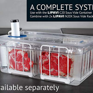 Desfrute de uma experiência culinária de nível de restaurante com esta tampa entalhada para seu circulador Sous Vide para uso com o recipiente LIPAVI C20. Serve para praticamente todos os circuladores de imersão sous vide do mercado: Anova Precision, Anova Nano, Anova Pro, Joule, Instant Pot, Gramercy, Wancle e a lista continua. Praticamente elimina a evaporação/água, para que você possa cozinhar por longos períodos, sem se preocupar em reabastecer a água. A tampa é exaustivamente testada em nossos laboratórios por longos períodos de tempo e reduzirá drasticamente o consumo de energia, proporcionando um cozimento ecológico e com preços razoáveis. Claro como cristal e completamente transparente – facilita a visualização da comida durante o cozimento. Devido ao policarbonato de alta qualidade, a tampa é durável, forte e fácil de limpar. COMBINE COM NOSSO RACK N20 SOUS VIDE PARA DOBRAR A CAPACIDADE DO SEU BANHO-MARIA! Lindamente feito, embalado com elegância. A LIPAVI fabrica equipamentos sous video de alto nível para o exigente chef/cozinheiro, e essa tampa não é exceção. Obtenha os melhores resultados investindo na configuração perfeita de sous vide hoje mesmo.