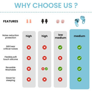 Silicone Ear Plugs for Noise Reduction – Reusable Soft Comfortable Earplugs for Sleeping,Noise Sensitivity & Flights -16 Ear Tips in XS/S/M/L, with 2 Travel Boxes – 33dB Noise Cancelling (Light Blue) – THE ULTIMATE COMFORTABLE EARPLUG- Reusable Soft Silicone, you will feel nothing in your ear while wearing these earplugs, No discomfort or pain. You can toss and turn or sleep on either side. – REDUCE THE NOISE – Noise Reduction can reduce up to 33 decibels,they are great for sleeping,snoring,studying, work, travel, concerts, relaxation, flying discomfort, etc.. – SUIT FOR ALL SIZES EAR – Our noise reducing earplugs come with ear tips in 4 sizes – XS/S/M/L, It has an ultra-small and ultra-thin design, and unparalleled noise reduction. – NOT EASY TO FALL OFF: The lightweight and soft silicone ear plugs are ergonomically designed around the shape of the human ear with a right-sized center to fit the shape of the pinna, breathable and comfortable, and stable to wear, even if you lie on your side or turn over, The sleeping ear plugs not easy to slip off. – NO ASSEMBLY REQUIRED – Easy to use. You dont have to worry about assembling, and you can wash the silence earplug. 16 Ear Tips in XS/S/M/L, with 2 travel boxes.