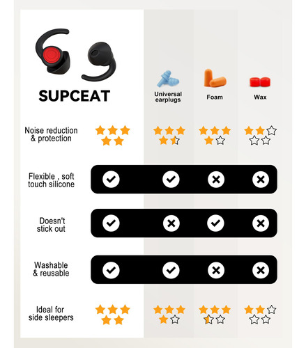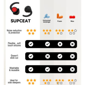 Tampões de ouvido de proteção auditiva SUPCEAT: Se você estiver interessado em nossos tampões de ouvido, experimente-os e tenha uma experiência confortável. Acreditamos que isso lhe trará uma melhor qualidade de vida. (Observação: os protetores de ouvido para dormir podem bloquear alguns ruídos até um volume aceitável, mas não totalmente silenciosos.). Se você tiver algum problema com nossos tampões de ouvido com cancelamento de ruído, sinta-se à vontade para nos informar. Estamos dispostos a substituir ou lhe dar um reembolso total.