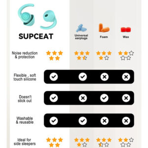 SUPCEAT Professional noise cancelling ear plugs for sleeping—provide you with long-lost peace and comfort Do you have difficulty sleeping at night? Do your ears hurt when you fly? Do you attend noisy events or study research? Are you annoyed by the noisy environment? If you answered yes to any of these questions, then SUPCEAT ear plugs for work would definitely help you. Generally made for comfort.The upgraded ear protection are made with a softer and more stretchy material, so they can be worn all day/night without any discomfort.25dB-33dB Noise Reduction Rating (NRR) noise reduction can protect hearing in loud events or set up a quiet environment effectively. Why choose our sleep ear plugs? Non-in-ear ergonomic design Soft silicone earplugs provide excellent ear protection for hearing-sensitive people by reducing destructive decibel levels without compromising sound quality Using bionic jellyfish design and horn design to make it fit the auricle, it is painless and not easy to slip off after wearing for a long time Reusable noise reduction earplugs It can be washed with water, which is environmentally friendly, healthy and hygienic, and its service life can be up to 2 years Design two sizes (L and S) of sleeping earplugs to meet the needs of people with different ear canal sizes. pretty colors available: SUPCEAT comes in an array of colours! Such as rose pink,sky blue and ebony black. Find the sleep earbuds that suit you, start here. SUPCEAT ear plugs noise cancelling are specifically designed for light sleepers. Theyre not only beneficial to drown out snoring sound to improve sleeping quality but also good for working, motorcycle riding reduces wind noise, flying relieves pressure, musicians, concerts, meditation, study and focus, drummers, sporting events, tinnitus relief or anyone with noise sensory sensitivity. Use our reusable ear plugs for sleeping to say goodbye to all kinds of noises in the world – Effective Noise Reduction: The ear plugs noise reduction have different noise-cancelling effects in different scenes (NRR 25dB to 33dB),soften the sound source and reduce noise while preserving the sound clarity and sharpness. These comfortable ear plugs for sleeping help preserve your hearing and provide you with some peace in a noisy world. – Safe, Reusable and Washable: The earplugs are made of super soft food-grade silicone material, which do not stick to dust and have a delicate touch, with good elasticity and memory function, and the ear plugs for sleeping noise cancelling can be pulled at will without deformation.A one-time purchase with great value for money! – Ergonomic Design:The ear plugs for sleep are designed with a bionic jellyfish and fit the ear canal 360 degrees. Even if you lie on your side or turn over, The sleeping ear plugs not easy to slip off. Breathable and comfortable, no pain to wear for a long time.Its worth mentioning that the non-in-ear design of our upgraded ear plugs for noise reduction eliminates the need to insert them deeply into the ear canal, thus avoiding the risk of hearing loss. – Enjoy The Comfort Of Different Sizes: The soft silicone ear plugs are designed in two sizes, large and small, to ensure maximum comfort and suitable for all people with different ear canal sizes.The hustle and bustle of life is gradually gone,and enjoy the long-lost comfortable sleep.The sleeping ear plugs are suitable for sleep, work, concerts, swimming, travel, study, etc.