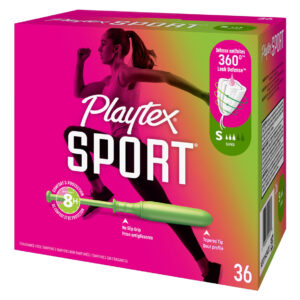 Tampões esportivos Playtex, superabsorventes, sem perfume – 36 quilates – 360 graus de proteção esportiva. Design de tampão para caber em seu corpo e em cada movimento uma barreira protetora contra vazamentos – As fibras interligadas FLEXFIT funcionam rapidamente para reter vazamentos – Aplicador contornado para um posicionamento confortável e preciso – Projetado para caber em seu corpo e cada movimento é uma barreira protetora contra vazamentos ao nadar, correr ou outras atividades. – A embalagem pode variar
