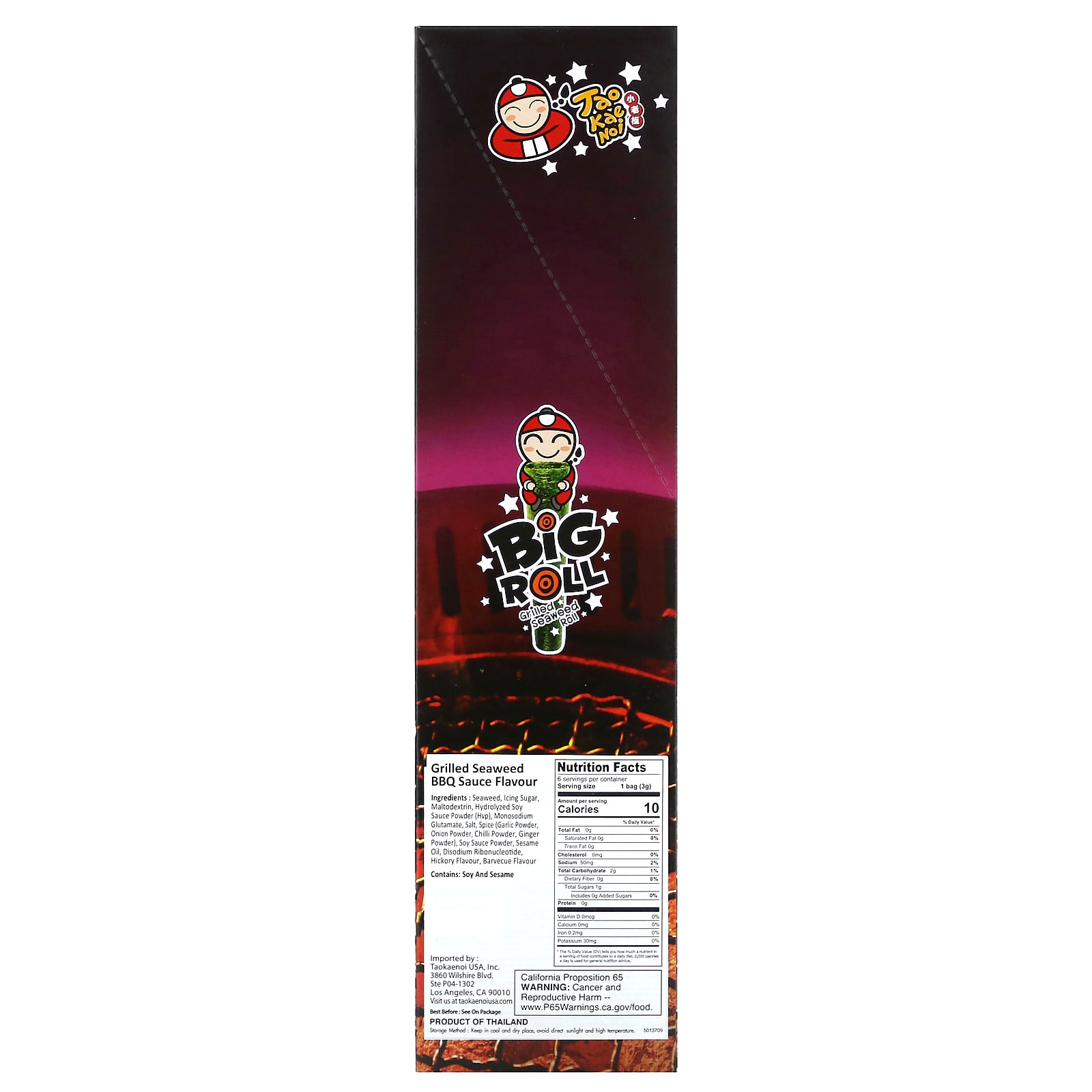 Tao Kae Noi Rolinho Grande Rolinho de Algas Grelhadas Molho de Churrasco 6 Pacotes 3 g (011 oz) Cada – Tao Kae Noi Alimentos Petiscos e lanches Petisco de alga marinha Frutas e Legumes Secos Alga marinha.