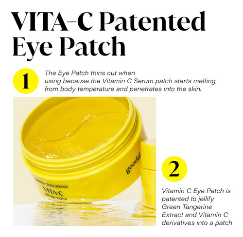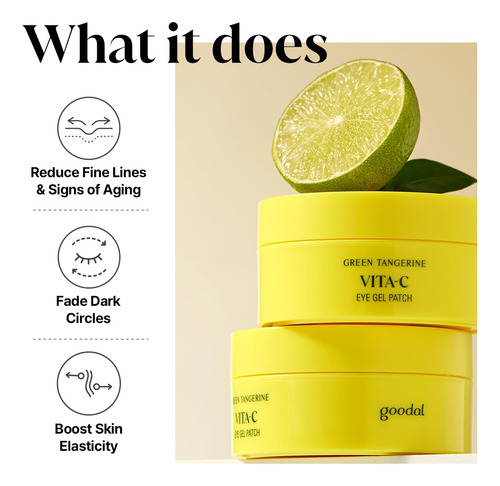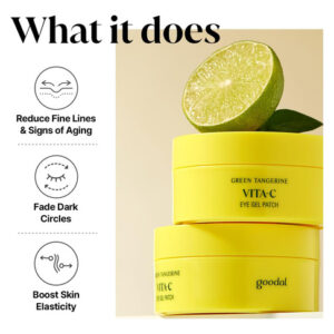 Tapa-olhos – [HIDRATAÇÃO E BRILHO INSTANTÂNEOS EM 5 MINUTOS] Cuide da pele opaca e cansada ao redor dos olhos com um simples adesivo de gel firmador. Com nossa fórmula de rápida absorção, veja uma pele visivelmente mais volumosa e brilhante a partir de apenas 5 minutos de uso. – [EXTRATO ENERGIZANTE DE TANGERINA VERDE E SÉRUM DE VITAMINA C] Nossas folhas de hidrogel são compostas pelos mesmos ingredientes principais encontrados em nosso exclusivo sérum de tangerina verde. Contendo 10 vezes mais vitamina C do que as tangerinas normais, o extrato de tangerina verde oferece o máximo de poder clareador. Revitalize e devolva vida ao rosto, começando pelos olhos. – [FOLHAS DE MATRIZ DE TANGERINA PARA ENTREGA EFICAZ] Cada lençol de tapa-olho hidratante com vitamina C de tangerina verde é estruturado para imitar a estrutura densa das cascas de tangerina. Esse design exclusivo introduz o sérum de vitamina C profundamente na pele à medida que o adesivo adere firmemente à pele. – [Cuidados de pele fáceis e rápidos] A rápida absorção e os resultados rápidos fazem deste um complemento rápido e fácil para o cuidado da pele a qualquer hora do dia. Use-o para uma maneira conveniente de acordar e rejuvenescer a pele ao redor dos olhos. – [MELHOR JUNTOS] Veja melhores resultados combinando com outros produtos da nossa linha Vita C. Disponível na vitrine da GOODAL.