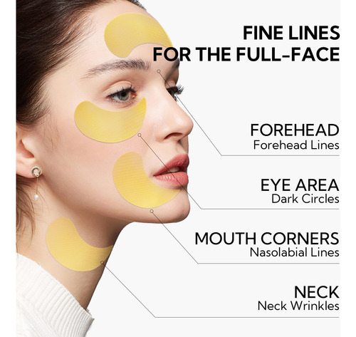Tapa-olhos LANBENA em ouro 24k, desbota linhas finas, rugas e olheiras, 30 unidades — Reduz linhas finas e olheiras: a máscara de olhos LANBENA 24k Gold também contém um complexo altamente eficaz de ouro 24k, cafeína e niacinamida para suavizar as linhas finas de forma poderosa, minimizar com eficiência olheiras e inchaços e nutrir a pele ao redor dos olhos. – Profundamente hidratante e reabastecedor de colágeno: o o ácido hialurônico e a ectoína nas almofadas oculares ajudam a hidratar e nutrir a pele, e os ricos tapa-olhos embebidos em líquido fornecem resultados duradouros, e você notará um aparência renovada desde o primeiro uso. – Design de grade aprofundado, muito menos provável de escorregar: com um design de grade antiderrapante atualizado, você pode aplicar a máscara ocular a qualquer hora e em qualquer lugar, como quando estiver trabalhando, cozinhando, tomando banho, fazendo tarefas domésticas, descansando e várias outras vezes, não precisa se preocupar com o tapa-olho escorregando e com o uso eficaz do seu tempo. – “BELO PRESENTE: Nossas máscaras para os olhos não apenas rejuvenesce e refresca a pele para hidratação ocular de emergência antes da maquiagem, mas também pode ser usada para acalmar a hora de dormir. E também é um preenchedor perfeito para presentes ou sacolas de presentes para despedidas de solteira e casamentos. 4 tipos de máscaras para os olhos atendem a todas as necessidades e cuidam de todos os tipos de pessoas.” – Pode ser usada em todo o rosto para reduzir as linhas finas: também pode ser usada na testa, cantos da boca, pescoço e outras partes do rosto, o que pode ajudar a reduzir as linhas finas e revelar uma aparência mais jovem; os tapa-olhos são suaves e não irritante para quem procura minimizar a aparência de olheiras, inchaço sob os olhos, rugas e inchaço.