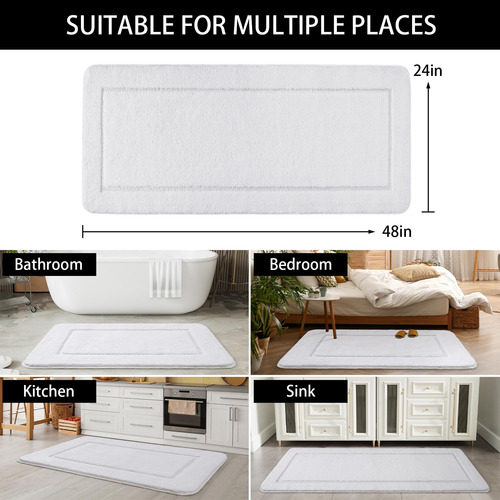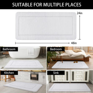 LOCHAS Luminous Non Slip Bathroom Rugs Runner 24 x 48 Inch, Extra Soft and Comfy Bath Mats Rug, Absorbent Thick Microfiber Mat Carpets for Shower, White – Glow in the Dark Design: The edge of the bathroom rug is made by luminous yarn, that makes it glow in the dark; This luminous design will give your family a surprise; Please let the bath rug absorb enough sunlight or any light source at least 7 hours – Extra Soft Bath Rug: Our bath rug features an exceptionally silky, velvety microfiber, which is more thick and bushy; When stepping out of the shower or bath, the softness and plush of this bath rug is something for your feet to enjoy – Ultra Absorbent: Keep your feet off cold, slippery floors in bathrooms, laundry rooms, and beyond with this absorbent bath mat; Thousands of soft, absorbent pile can soak up the water quickly and fast drying for maximum serenity and warmth – Strong Backing: The bottom of the bathroom mat is tpr with a geometric pattern that prevents moisture penetration and conforms to the floor for stability, while strongly hold mats firmly in place for safety; Please place rug on smooth clean floor only – Machine Washable: Machine wash separately in cold water; Tumble dry on low setting; Or Simply pick up and shake the rug to make it fluff; No issues with degrading glow effect whatever no matter how many times you wash as long as absorb enough light source