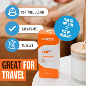 Carpe Lotion é uma loção antitranspirante para os pés recomendada por dermatologistas que é suave, de rápida absorção e ajuda com os pés suados. Aplique à noite e use de forma consistente. Efeitos criados com uso prolongado. As pessoas que compram este produto também pesquisam com frequência: spray para pés irritantes e bolhas Tratamento alternativo para pés suados – EFICÁCIA OTIMIZADA: nossa loção antitranspirante para pés foi projetada especificamente para impedir pés suados e cheirosos e ajudar a controlar os sintomas da hiperidrose plantar ou do suor excessivo nos pés. Imagine zero suor, confiança restaurada e vida com pés frescos e secos! – REDUZA O SUOR E O CHEIRO: Com uma pequena quantidade de Loção Antitranspirante Carpe, você pode reduzir os pés suados sem as desvantagens dos tratamentos orais ou da iontoforese. Aplique todas as noites e conforme necessário e diga adeus aos pés suados e fedorentos. – COMO VISTO NO GOOD MORNING AMERICA: uma loção antitranspirante suave e não oleosa feita para os pés mais suados, Carpe inclui óleo natural de eucalipto e ingredientes hidratantes que suavizam suavemente a pele e evitam a oleosidade com suas propriedades de secagem rápida. – DESENVOLVIDO COM DERMATOLOGISTAS: A fórmula de Carpe foi desenvolvida cientificamente foi testado de forma independente quanto à segurança e eficácia e é um dos principais tratamentos de suor vendidos sem receita médica. – DONT SWEAT IT: Garantia vitalícia de devolução do dinheiro. A embalagem pode variar, a caixa pode não estar incluída. Livre de parabenos, ftalatos, formaldeídos e sulfatos – Nunca testado em animais – Preenchido nos EUA. – Queremos fazer os melhores produtos de suor que funcionem para você – todo mundo é diferente, então entre em contato se o produto não funcionar para você para que possamos corrigi-lo.
