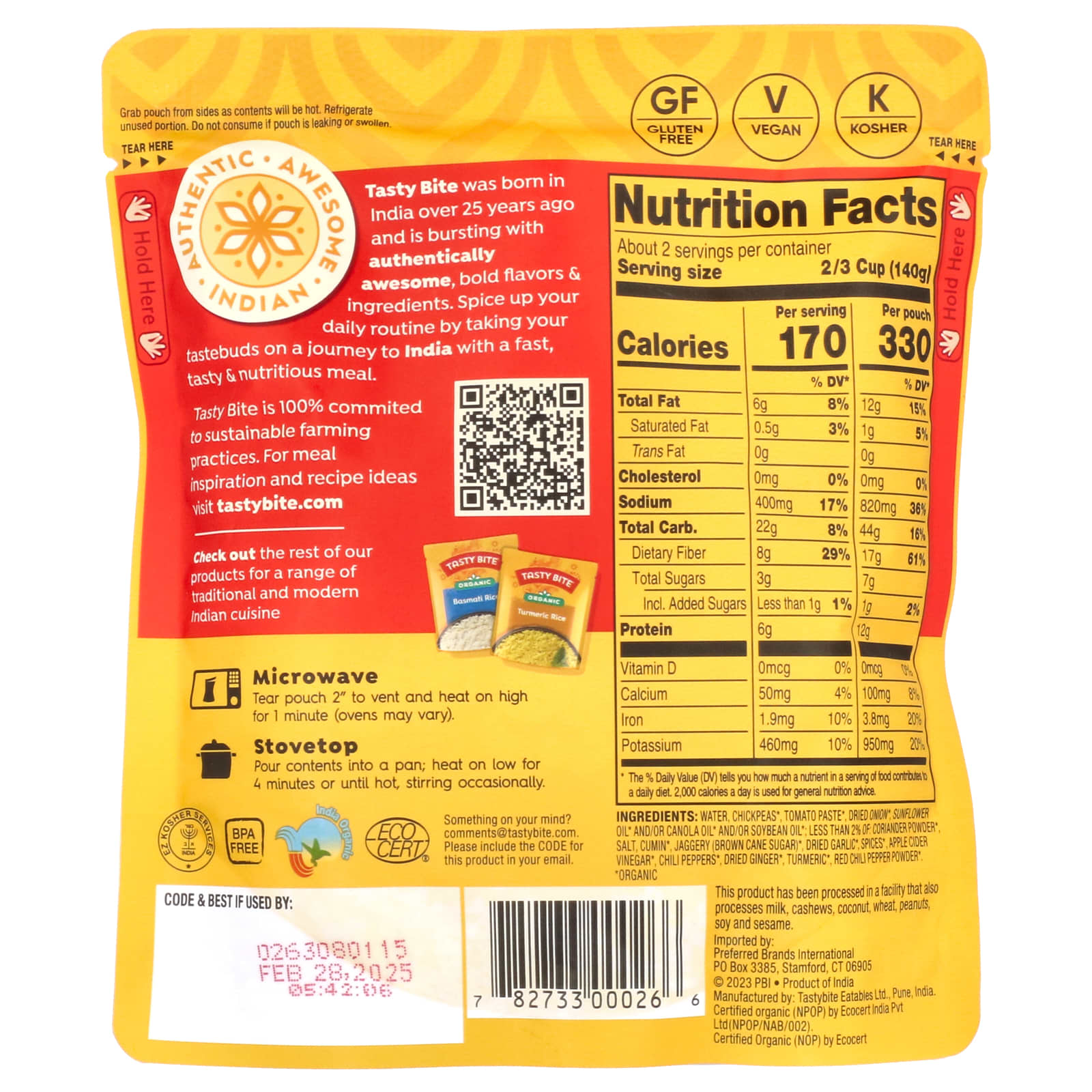 Tasty Bite Channa Masala Orgânico Suave 285 g (10 oz) – Tasty Bite Alimentos Alimentos embalados e prontos Refeições Prontas Refeições indianas Condimentos, molhos e pastas Molhos e marinadas Pasta e molho de curry.