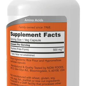 Taurina Taurine Now Foods 500mg 100 Veg Cápsulas Ideal para Aumentar Foco Energia – No Brasil