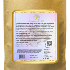 Redescubra um tesouro tradicional com o chá de raiz de marshmallow orgânico puro Cure Wid. Durante séculos, as propriedades calmantes das raízes do marshmallow foram usadas para aliviar a tosse, apoiar a digestão saudável e promover o bem-estar geral. Se você está criando misturas de ervas personalizadas, procurando uma xícara reconfortante de chá de raiz de marshmallow ou explorando os benefícios da folha de marshmallow, nossas raízes de marshmallow premium cortadas e peneiradas oferecem uma experiência pura e natural. Nossas raízes de marshmallow de origem ética são certificadas como orgânicas, não transgênicas e não irradiadas, garantindo que você receba todos os benefícios dessa erva consagrada pelo tempo. Experimente o aroma delicado e terroso do pó orgânico de raiz de marshmallow enquanto prepara suas infusões. Cada gole traz uma sensação de calor e conforto, um lembrete gentil do poder da natureza. Abrace seu fitoterapeuta interior! O chá de raiz de marshmallow é uma base deliciosa para misturas criativas. Explore seu potencial em remédios para a pele e descubra suas possibilidades culinárias. Seu bem-estar, nossa prioridade Na Cure Wid Pure, acreditamos no poder transformador da natureza e na importância de um atendimento excepcional ao cliente. Se você tiver alguma dúvida sobre o uso de folhas ou raízes de marshmallow, nossa equipe dedicada está aqui para apoiá-lo em sua jornada de bem-estar. – Abrace a sabedoria de séculos. A raiz de marshmallow, uma erva consagrada pelo tempo, tem sido usada por suas propriedades calmantes e suporte digestivo. Descubra seus benefícios naturais com nossas raízes de marshmallow não transgênicas, não irradiadas e de origem ética, orgânicas para seu bem-estar. – Sinta o toque suave da natureza e nutra seu corpo com pura bondade. Nossa raiz de marshmallow orgânico premium oferece suporte tradicional com um calor calmante, aliviando sua garganta e confortando seus sentidos. – Desbloqueie seu fitoterapeuta interior. Esta versátil raiz de marshmallow cortada e peneirada é um ingrediente chave para chás personalizados, misturas calmantes, tinturas revitalizantes, cuidados naturais para a pele e receitas criativas. Explore o mundo do bem-estar natural com facilidade. – Experimente um frescor duradouro. Nossa raiz de marshmallow (Althea officinalis) é livre de sabores, cores e quaisquer aditivos artificiais e é embalada em um saco ecológico que pode ser fechado novamente para preservar a essência delicada de seu chá de marshmallow orgânico. Cada vez que você o abrir, você será saudado pelo aroma doce e terroso de qualidade – Sua jornada de bem-estar é nossa prioridade. Acreditamos no fornecimento de produtos de qualidade premium aos nossos clientes e em um suporte ainda melhor. Portanto, se você tiver alguma dúvida, nossa equipe dedicada está aqui para orientá-lo e apoiá-lo. Acreditamos no poder da natureza e no poder de um cuidado excepcional.