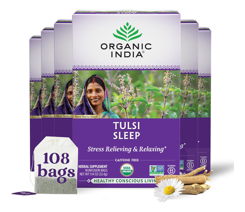 Tea Organic India Tulsi Sleep Herbal Tea, 18 Sacos, Pacote C