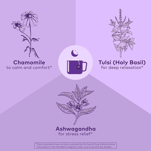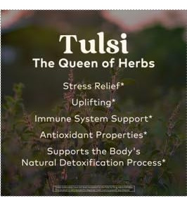 Duas variedades sagradas de tulsi: Krishna e vana, são misturadas com ervas curativas anti-estresse, incluindo brâmane, ashwagandha e shankpushpi, que também fornecem a energia restauradora necessária para um sono saudável. Essas ervas são misturadas com camomila, cardamomo e hortelã para criar uma deliciosa infusão de ervas que promove um sono calmo e repousante.
