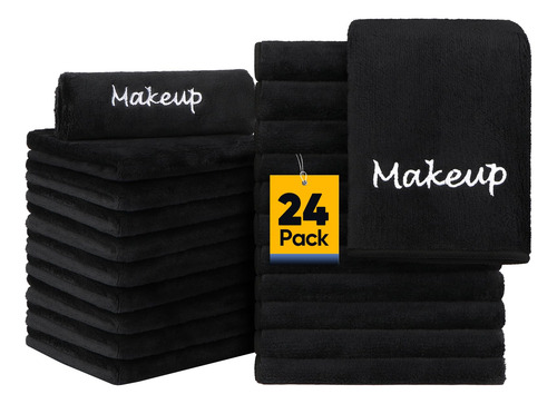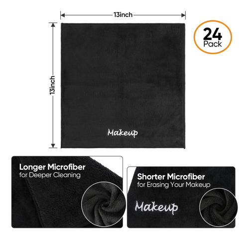 Pano removedor de maquiagem UNIMADE, pacote com 24 panos de lavagem facial pretos, toalha de microfibra de lã coral macia para rosto, mãos e banheiro (13 x 13)