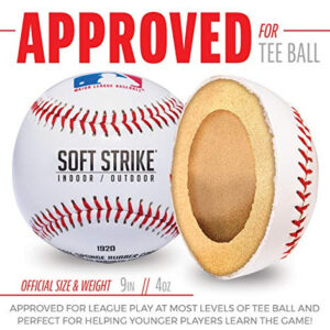 Franklin Sports Youth Tee Balls – Soft-Strike T Ball Soft Baseballs – (6) with Carry Bag – Official Teeball Size + Weight – OFFICIAL SIZE & WEIGHT : These balls are constructed according to official 9.0 size and 4 ounce weight specifications – SOFT CONSTRUCTION: The hollow rubber core and cushioned synthetic cover gives these teeballs a soft feel so kids of all ages can play safely – DURABLE: The synthetic syntex cover and double-stitched seams are designed for maximum durability so you can play season after season – HOLLOW CORE: The hollowed out core helps keep the balls light so younger kids and toddlers can throw and catch with ease – LEAGUE APPROVED: These balls are approved for official game play at most levels of teeball