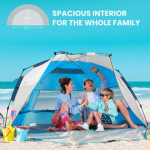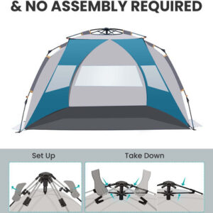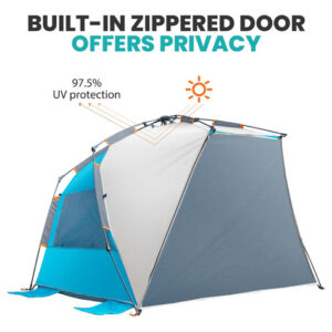 Barraca de praia dobrável OutdoorMaster para 4 pessoas — Cobertura de proteção solar portátil e fácil de configurar com proteção UV UPF 50+, clarabóia removível, tamanho familiar — Costa de Ocracoke — Fácil de configurar e portátil: esta barraca de praia dobrável permite ser montada em segundos, sem etapas complicadas de instalação. Os dias frustrantes de montar e derrubar grandes barracas de praia acabaram! Leve e fácil de dobrar para trás com uma bolsa de transporte compacta para facilitar o transporte e armazenamento – Barraca de praia durável: a tenda de praia OutdoorMaster é feita com piso durável de 150D e postes de fibra de vidro grossos de 8,5 mm, também vem com estacas e corda para proporcionar mais estabilidade – Proteção solar e à prova de intempéries: nosso protetor solar de barraca de praia é feito de poliéster 210T premium e pode bloquear efetivamente o calor e os raios UV nocivos. Também classificado como revestimento de PU de 3000 mm, deixa a barraca de praia 100% à prova de intempéries, oferece proteção contra o sol e o vento para todas as atividades ao ar livre – Espaço luxuoso: a barraca dobrável de praia tem espaço suficiente na barraca de praia XL para 2 adultos e 2 crianças se sentarem no interior. O design espaçoso oferece um espaço confortável para refrescar a sombra e relaxar – Design versátil: a porta embutida com zíper garante privacidade ao vestir roupas secas. Grandes janelas de malha e pontos de abertura duplos permitem excelente ventilação e brisas refrescantes. Além disso, os bolsos suspensos de malha fornecem armazenamento conveniente para itens valiosos