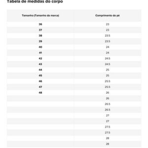 Escolha um tamanho maior se seu pé for largo ou grosso.