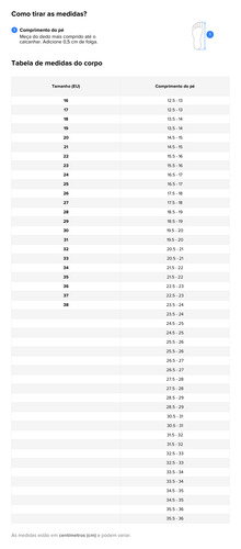 Tamanhos disponíveis: