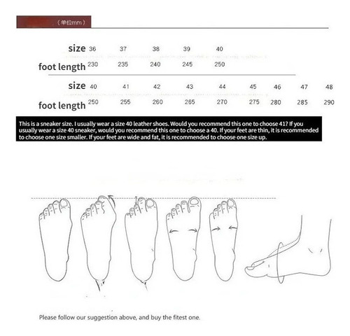 Tamanhos Correspondentes ao Comprimento do Pé:
