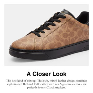 COACH Mens High Line Sneaker, Khaki/Black, 8.5 – Editors Notes: An updated take on a classic sneaker style, our highline mens low top sneakers are crafted of our quality leather and Signature canvas. Fit: Runs large, order 1/2 size down – Our Signature Canvas: The best kind of mix up. This rich, mixed leather design combines sophisticated refined calf leather with our signature canvas – for a perfectly iconic Coach sneakers for men – EVA Outsole: This versatile Coach sneaker features a grooved rubber outsole for great traction – Its All in the Details: Fabric lining and footbed, EVA outsole, lace-up closure – This is COACH: Having the courage to be real since 1941. COACH is the Original American House of Leather – with a legacy of craft and a community that champions the courage to live authentically