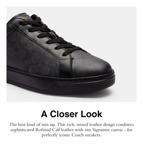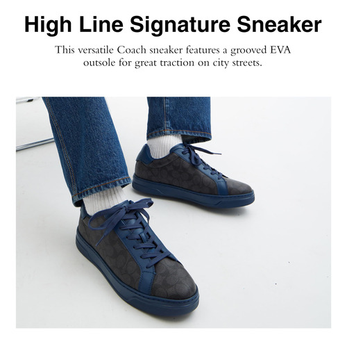 COACH Mens High Line Sneaker, Graphite/Black, 9.5 – Editors Notes: An updated take on a classic sneaker style, our highline womens sneakers are crafted of our quality leather and Signature canvas. – Our Signature Canvas: The best kind of mix up. This rich, mixed leather design combines sophisticated refined calf leather with our signature canvas – for a perfectly iconic Coach sneakers – EVA Outsole: This versatile Coach sneaker features a grooved rubber outsole for great traction – Its All in the Details: Leather upper, fabric lining and footbed, EVA outsole, lace-up closure – This is COACH: Having the courage to be real since 1941. COACH is the Original American House of Leather – with a legacy of craft and a community that champions the courage to live authentically