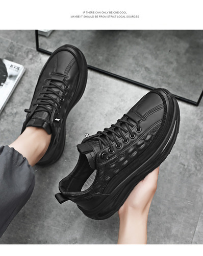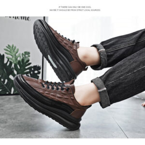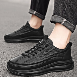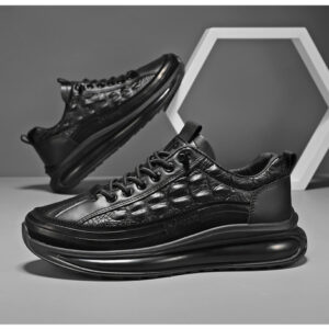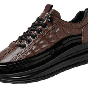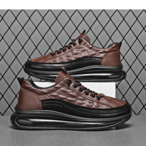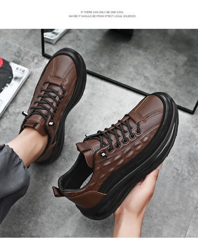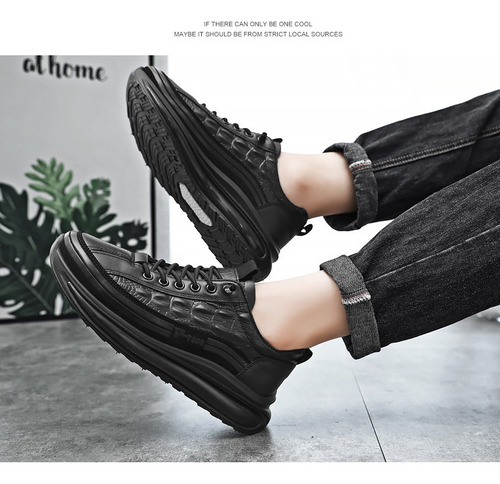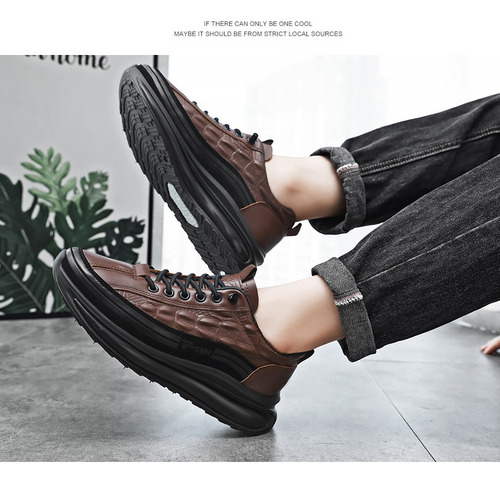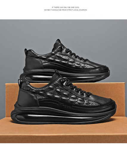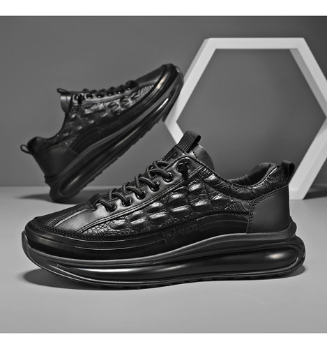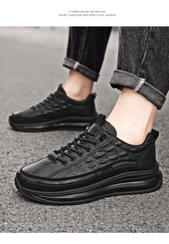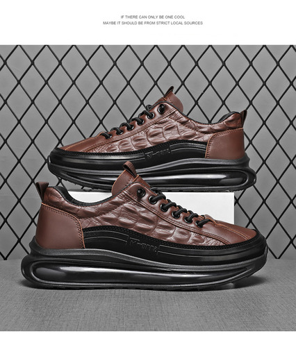 6. Sapatos casuais masculinos de couro de couro com almofada de ar, tênis masculinos da moda com estampa de crocodilo, sapatos confortáveis casuais antiderrapantes, levantamento de altura em couro macio, calçados esportivos com absorção de choque