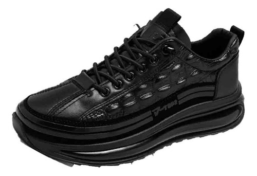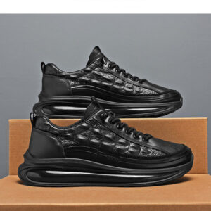 Sapatos casuais masculinos de couro de couro com almofada de ar, tênis masculinos da moda com estampa de crocodilo, sapatos casuais confortáveis.