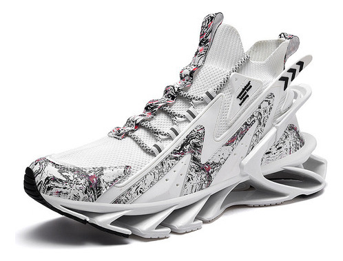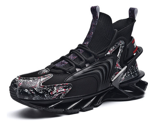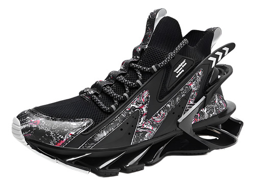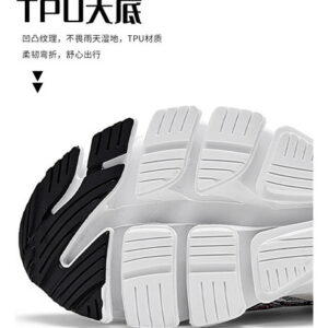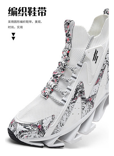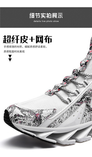 MaterialTêxtil de malha respirável sintetizado de alta qualidade, couro frontal anti-colisão, meias têxteis elásticas no tornozelo, sola de plataforma macia com amortecimento elástico.