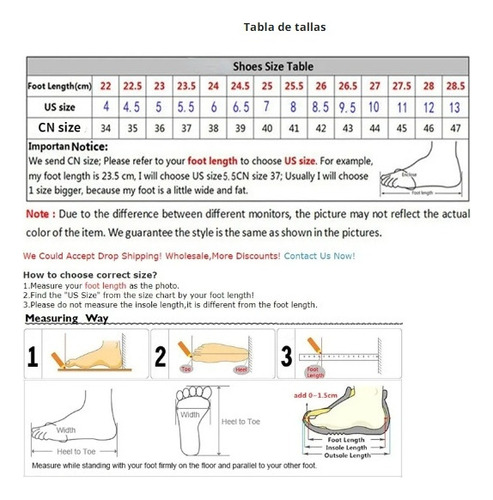 Observação: escolha o tamanho do sapato de acordo com o comprimento do pé, não o comprimento da palmilha.