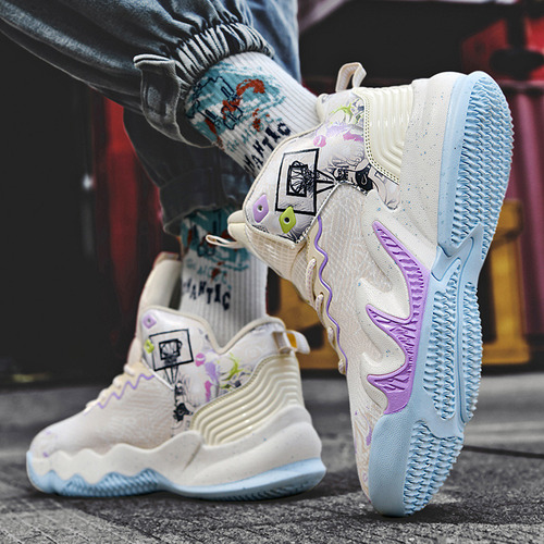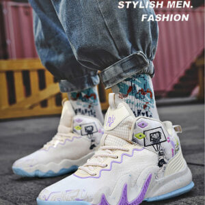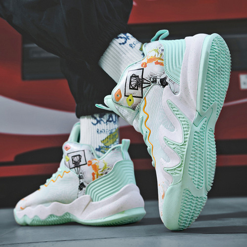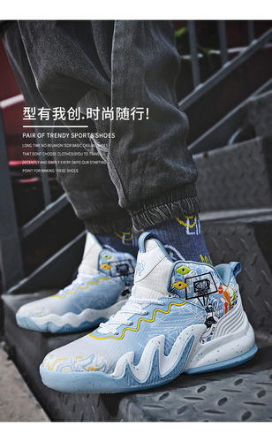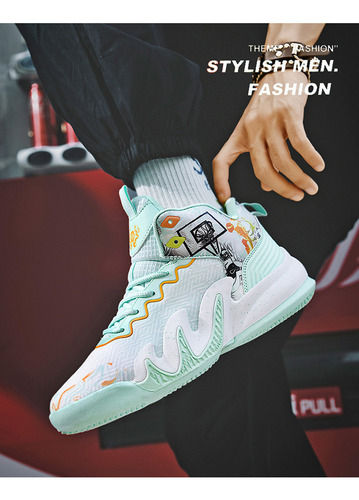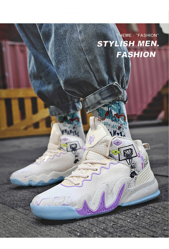 Tênis De Basquete Cano Alto Leve De Malha Respirável08