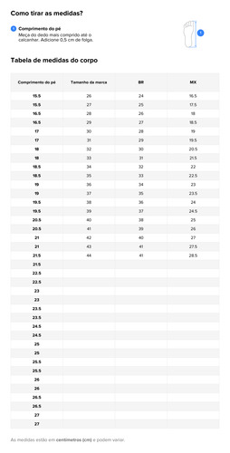 MX 26 = EU 40 = (comprimento do pé) 26,0cm;