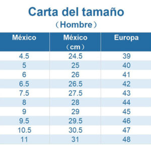 EU40 = México 5 = México 25 = comprimento do pé 25 cm