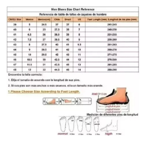 Se você tiver alguma dúvida, não hesite em nos contatar. Devido à diferença de horário internacional, lamento não ter respondido o mais rápido possível. Entrarei em contato com você o mais rápido possível após receber sua mensagem. Dica: Se você tiver pés mais largos, escolha um tamanho maior antes de fazer o pedido. Peça ao serviço de atendimento ao cliente que recomende seu tamanho, tamanhos diferentes podem variar. Você pode nos dizer seu tamanho mexicano antes de fazer um pedido, e podemos recomendar o tamanho mais adequado para você!