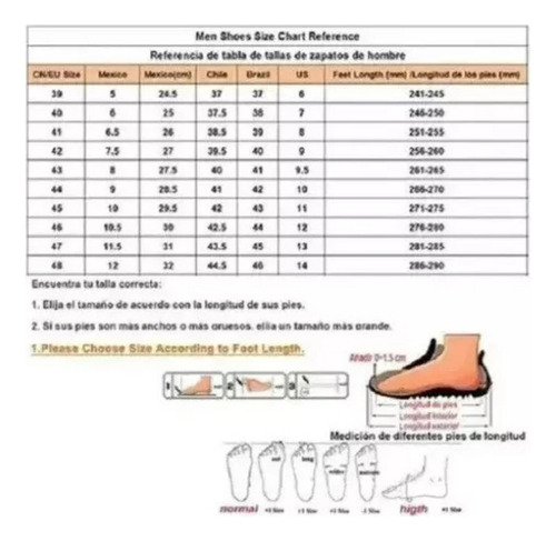 Se você tiver alguma dúvida, não hesite em nos contatar. Lamento não responder o mais rápido possível devido à diferença de horário internacional. Entrarei em contato com você assim que receber sua mensagem. Dica: Se seus pés forem mais largos, escolha um tamanho maior antes de fazer o pedido. Peça ao serviço de atendimento ao cliente que recomende seu tamanho, tamanhos diferentes podem variar. Você pode nos dizer seu tamanho mexicano antes de fazer o pedido, podemos recomendar o tamanho mais adequado para você e evitar comprar o tamanho errado! Se houver algum problema com o produto, não reclame imediatamente, entre em contato conosco ao fazer o pedido, faremos o possível para resolver o problema! Obrigado pela sua cooperação! Que você tenha uma vida feliz todos os dias! Obrigado por seu apoio!