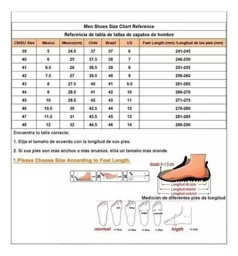 A lista de itens é do tamanho da EU, compre de acordo com o comprimento do seu pé em cm.