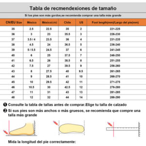 Temos tamanhos internacionais padrão (tamanhos mexicanos). Se você tiver alguma dúvida sobre os tamanhos, escolha o tamanho de acordo com o comprimento do seu pé.