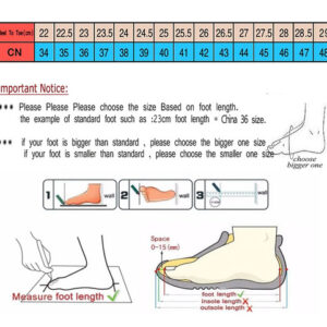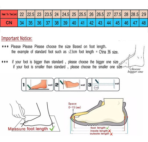 se você tiver um pé mais largo, escolha um tamanho maior. Temos fotos reais dos vendedores de cada sapato, você pode usá-lo como referência!