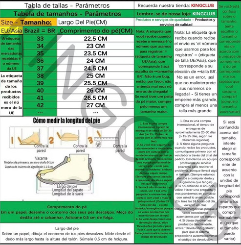 ***** Observação: se você estiver confuso sobre os tamanhos (que podem ser diferentes dos do seu país), escolha o tamanho com base no comprimento do seu pé! ! ! !