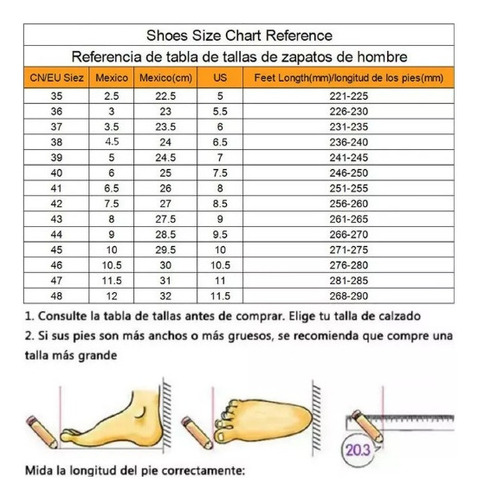 Somos tamanho padrão internacional (tamanho mexicano), se você confundir o tamanho, obtenha o tamanho de acordo com o comprimento do pé.
