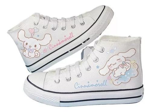 Modelo: Sanrio Hello Kitty Kuromi Cinnamoroll Tênis de lona de cano alto