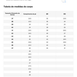 27.0 = EU 42 = BR 40, MX 28.0 = EU
