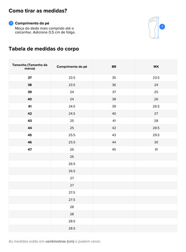 tamanhos podem variar 1 cm (veja a tabela nas imagens).