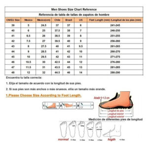 Usamos o tamanho padrão da CN/UE. Escolha o tamanho correto de acordo com o comprimento de seus pés. Se você estiver confuso com o tamanho: se seus pés forem mais grossos ou mais longos, escolha um tamanho maior: