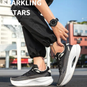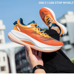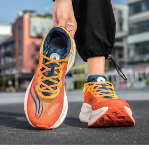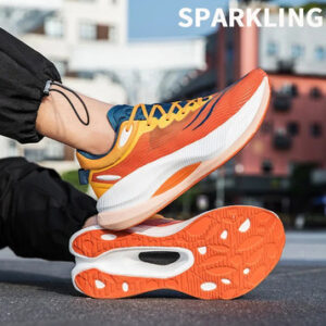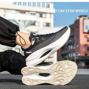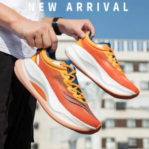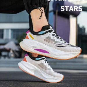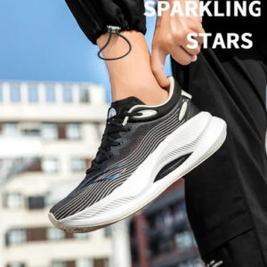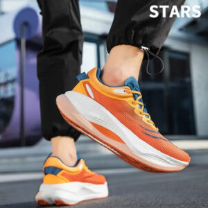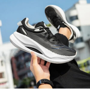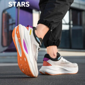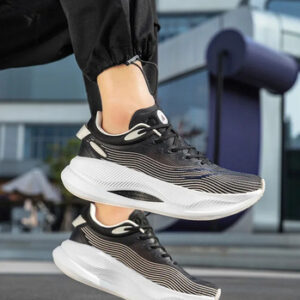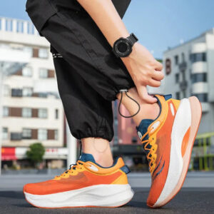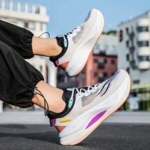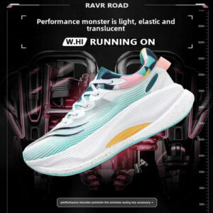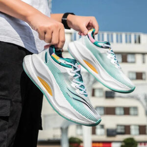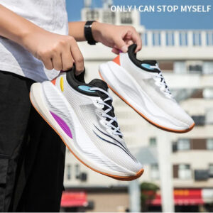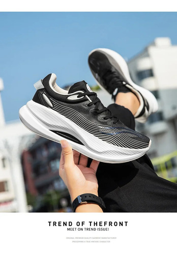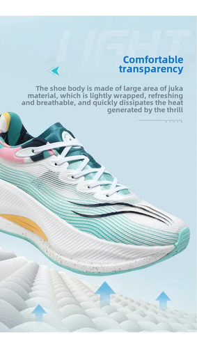 Cabedal de malha respirável: leve, respirável e confortável para corridas e exames.