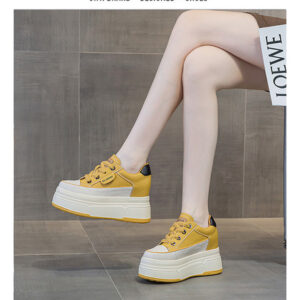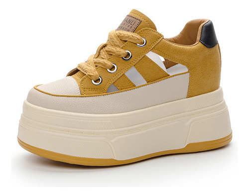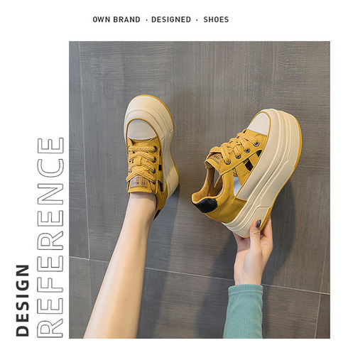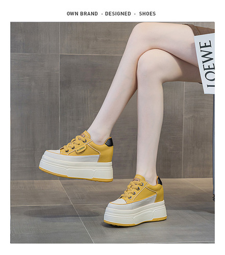 Plataforma de 6 cm e altura interna de 3 cm, proporcionando um aumento total de 9 cm. O design ergonômico desses tênis de cunha melhora instantaneamente a sua altura, fazendo você parecer mais elegante e confiante.
