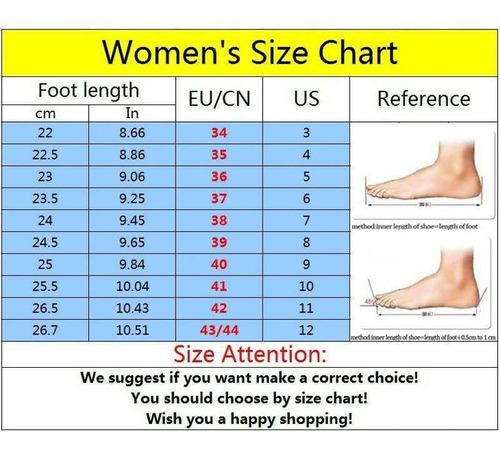 Somos tamanhos padrão europeus, se você estiver confuso sobre o tamanho, escolha o tamanho correto do comprimento do pé: Se você tiver pés mais grossos ou mais grossos, escolha o tamanho maior: